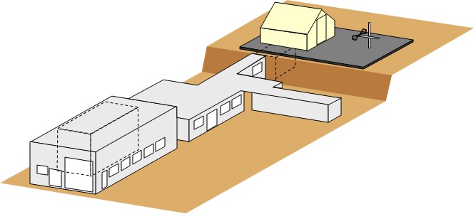 ・事務所棟等建物は、オープンサイトグランドプレーンより低い位置に配置しています。(測定時の建物の影響を無くしています)